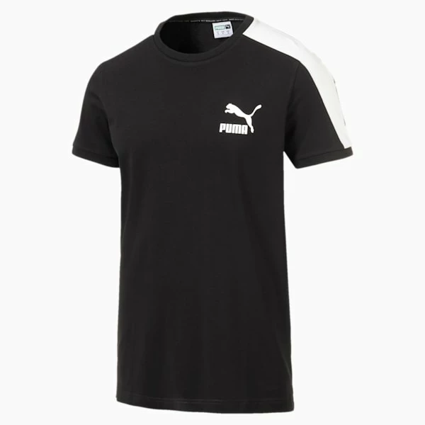 <h3>PRODUCT STORY</h3>This Iconic T7 Tee takes retro design inspiration from our heritage T7 design, updated for the next generation of streetwear icons. The signature T7 stripes run down each sleeve, and PUMA branding completes the look.<h3>DETAILS</h3><ul><li>Slim fit</li><li>Crewneck collar</li><li>T7 panel inserts at sleeves</li><li>Back neck taping</li><li>PUMA Archive No. 1 Logo at left chest</li><li>Cotton and elastane</li></ul>
