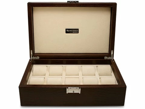 - Features ten compartments with removable pillows for holding ten watches.
